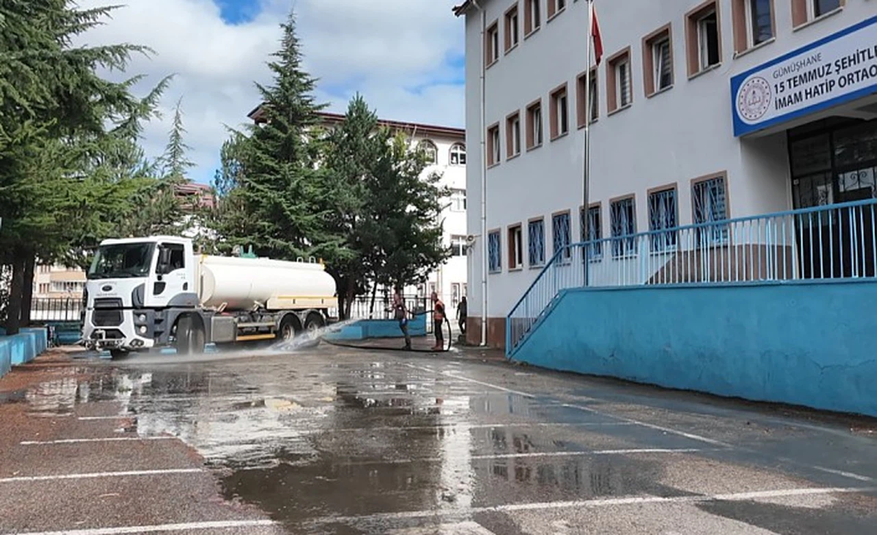 Birçok okulda sürdürülen temizlik çalışmaları kapsamında okul bahçeleri, oyun alanları çöplerden ve otlardan arındırılırken, tazyikli su ile yıkandı, okulların ortak kullanım alanlarında ilaçlama çalışması gerçekleştirildi.