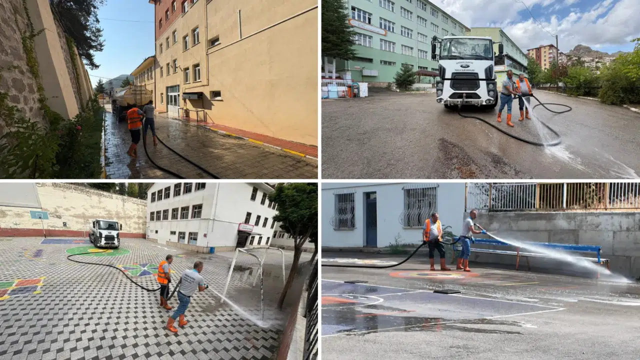 Gümüşhane Belediyesi Temizlik İşleri Müdürlüğü ekipleri, yeni eğitim-öğretim yılı öncesinde öğrencilerin sağlıklı ve temiz bir ortamda ders başı yapabilmeleri için il merkezindeki okulların bahçelerinde kapsamlı temizlik çalışmaları gerçekleştirdi.