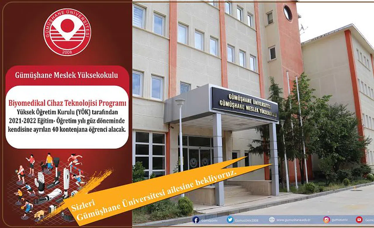 Gümüşhane Üniversitesi, Gümüşhane Meslek Yüksekokulu Elektronik ve Otomasyon Bölümü bünyesinde aktif hale getirilen Biyomedikal Cihaz Teknolojisi Programı, 2021-2022 Eğitim Öğretim yılı güz döneminde ilk öğrencilerini alacak.