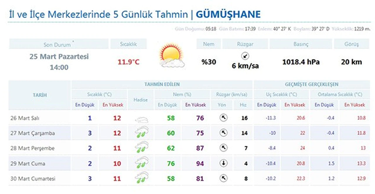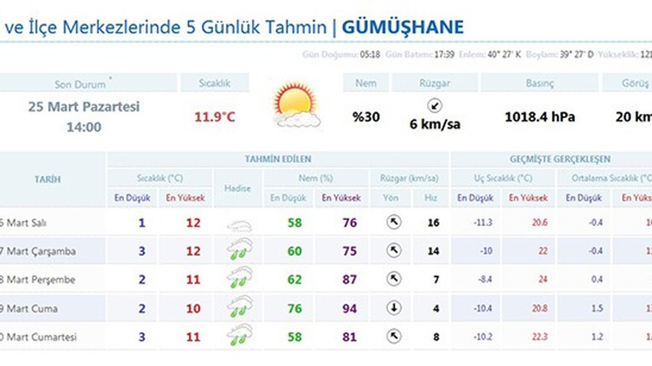 Yaptığı açıklamada, hava sıcaklığının yurt genelinde olduğu gibi Gümüşhane’de de hafta başından itibaren hissedilir derecede (6-12 derece) düşeceğini kaydeden Kul, hava sıcaklığının hafta boyunca Gümüşhane’de en düşük 2, en yüksek 13 derece olmasının ve yağışlı havanın Cumartesi günü şehri terk etmesinin beklendiğini dile getirdi.
