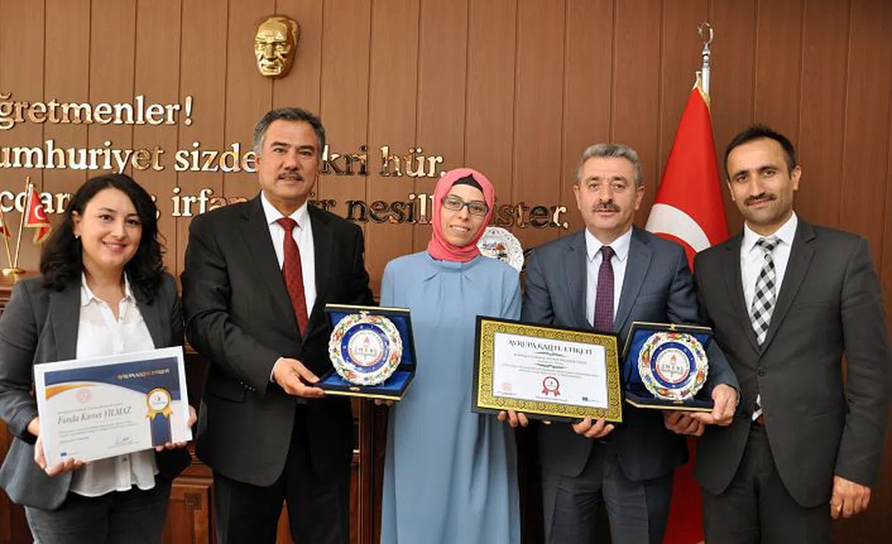 UDS tarafından pedagojik yenilik, teknoloji kullanımı, iş birliği ve iletişim gibi kategorilerde değerlendirilen projenin kalite etiketlerini Funda Kuvvet Yılmaz ve Okul Müdürü Köksal Duman’a İl Milli Eğitim Müdürü Seydi Doğan takdim ederek tebrik ve teşekkürlerini belirtti.