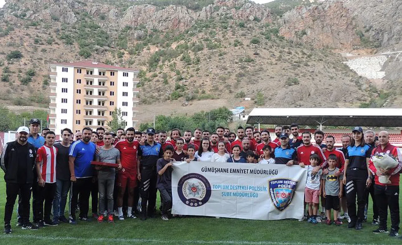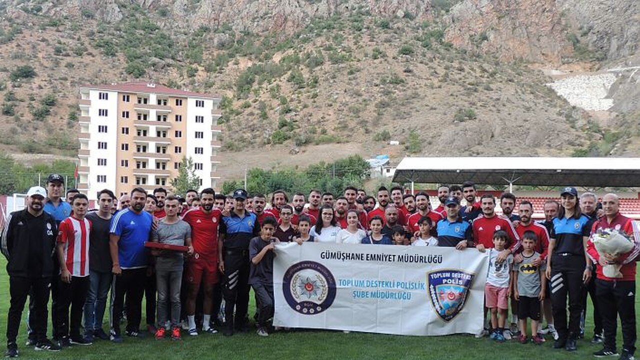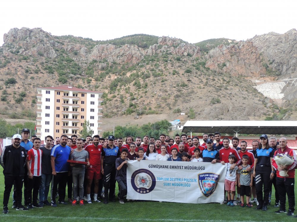 Gümüşhane İl Emniyet Müdürlüğü Toplum Destekli Polislik Şube Müdürlüğü personeli tarafından hazırlanan ÇOGEP “Bir Çocuk Bin Umut 2” projesi kapsamında 30 çocuk, Gümüşhanespor’lu futbolcuları antrenmanda ziyaret etti.
