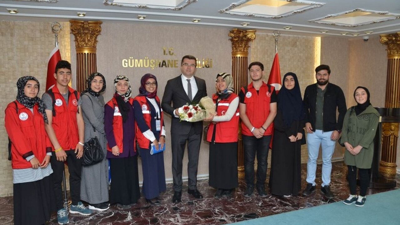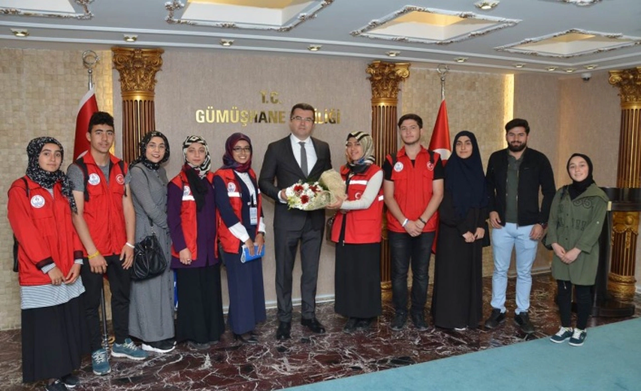 Gümüşhane Üniversitesi Damla Projesi Topluluğu temsilcisi Reyhan Çomak ve topluluk üyeleri, Vali Okay Memiş’i makamında ziyaret etti.