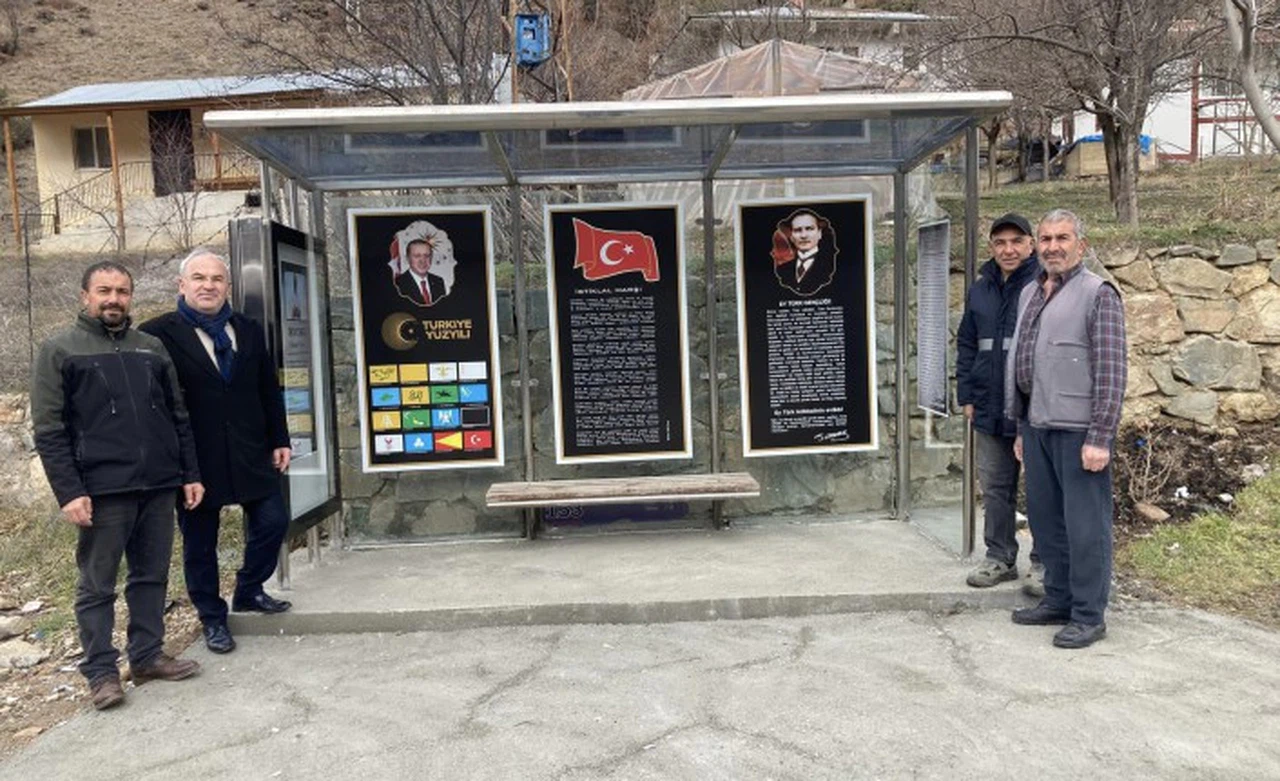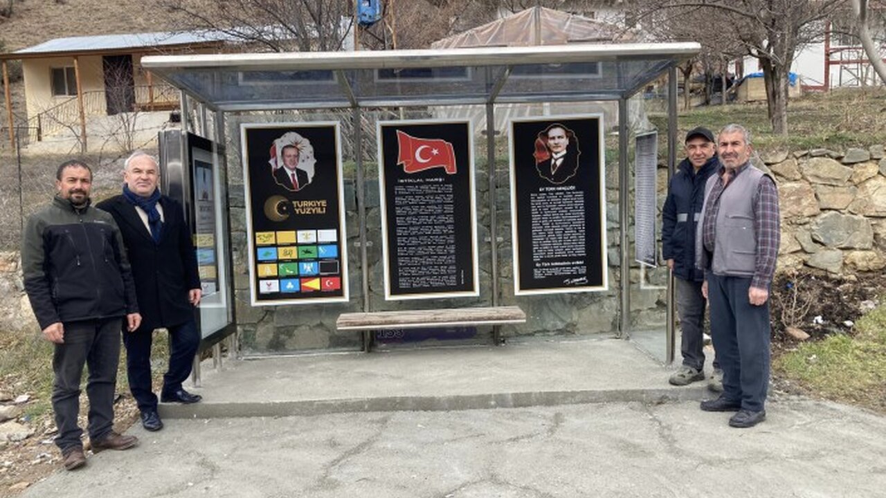 İçerisinde merhum Dereli'nin fotoğraf ve özgeçmişiyle Türk Bayrağı, İstiklal Marşı, Atatürk’ün gençliğe hitabesi, Türkiye Yüzyılı ve tarihteki 16 Türk devletinin bayraklarının olduğu durakta ayrıca Havriya Mahallesinin geçmişiyle ilgili de bilgi verilen afişte yer aldı.