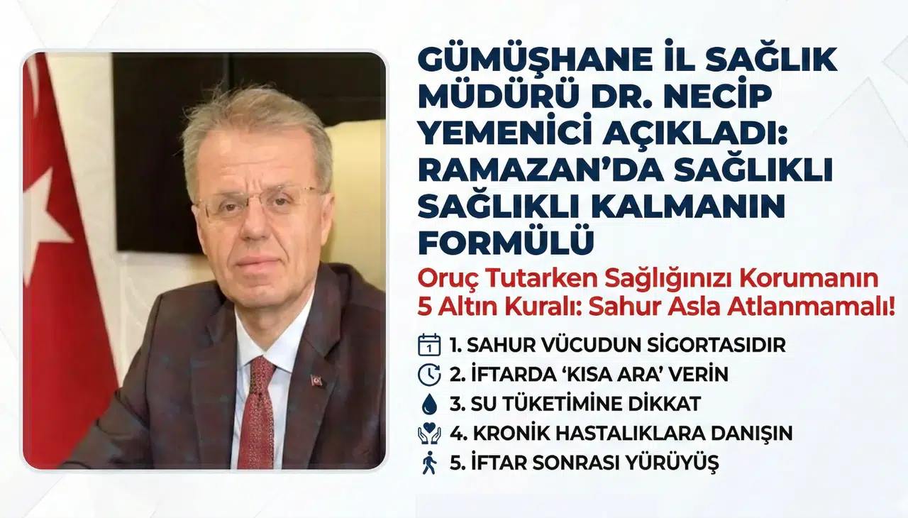 Gümüşhane İl Sağlık Müdürü Dr. Necip Yemenici, vatandaşların bu süreci en sağlıklı şekilde geçirmeleri için kapsamlı bir bilgilendirme metni yayımladı.