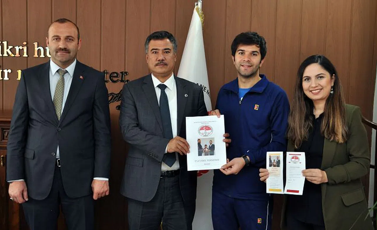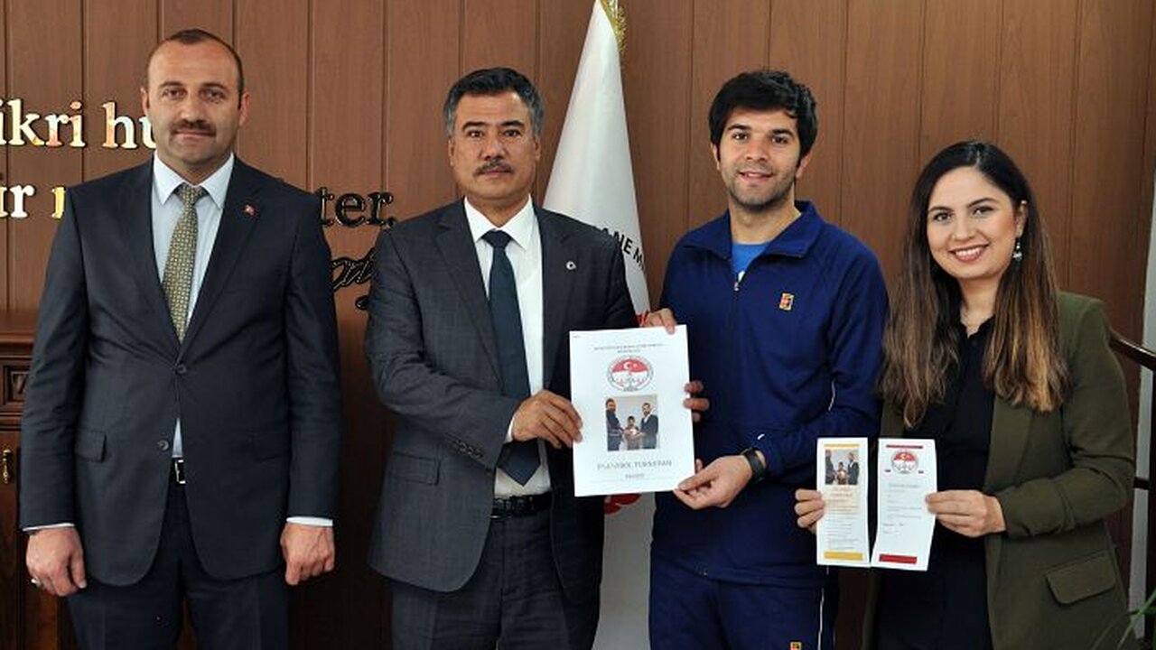 Okul Müdürü İsa Aslan beraberinde Beden Eğitimi Öğretmeni Ahmet Aydın ve Rehber Öğretmen Fatma Bektaş ile Milli Eğitim Müdür Seydi Doğan'ı ziyaret etti.