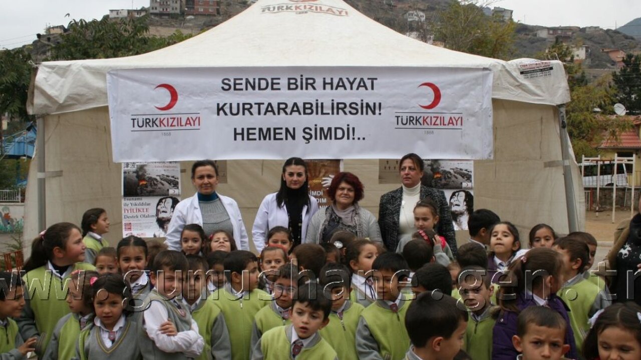 Okul öğretmenleri Neriman Karakaş ve Elif Hacısalihoğlu tarafından okul bahçesinde gerçekleştirilen etkinlikte Kızılay’a ait çadır kurularak, öğrencilere Kızılay’ın önemi anlatıldı.