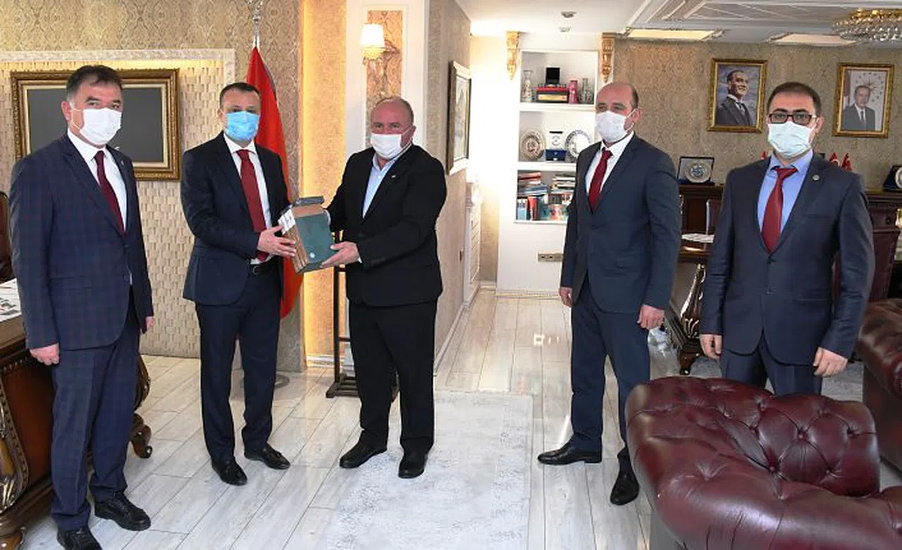 Ziyarette Şube Başkanı Habib Tanış tarafından Vali Kamuran Taşbilek’e Türk Edebiyat tarihinde yedi güzel insandan biri olan şair, mütefekkir ve sendikanın kurucusu merhum Mehmet Akif İnan’ın eserlerinin yer aldığı set hediye edildi.