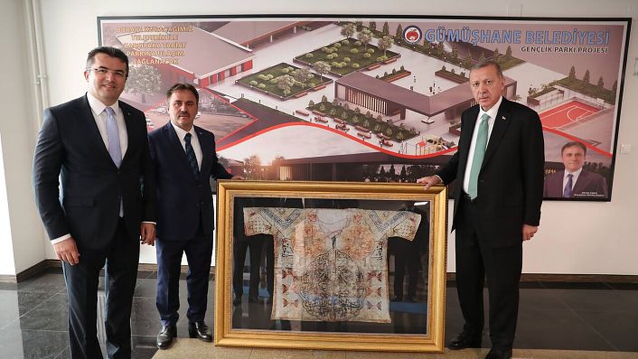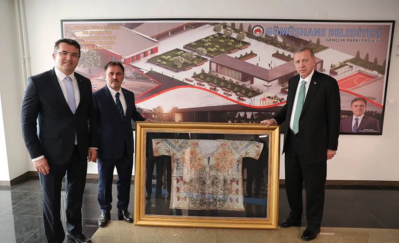 Cumhurbaşkanı Recep Tayyip Erdoğan’ın geçtiğimiz günlerde gerçekleştirdiği Gümüşhane ziyaretinde kendisine Osmanlı padişahlarının savaşa giderken giydiği tılsımlı gömlek hediye edildiği ortaya çıktı.