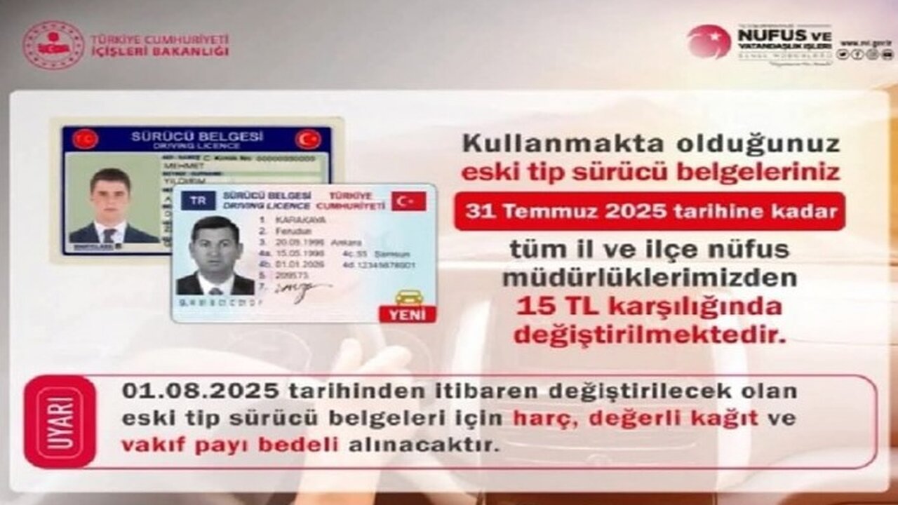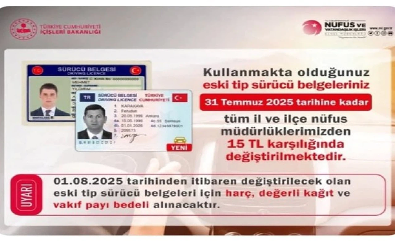 31 Temmuz’dan sonra değişim için müracaata edecek vatandaşlardan harç, değerli kâğıt bedeli ve vakıf payı bedeli alınacağı kaydedilen açıklamada çeşitli istatistikler de paylaşıldı.