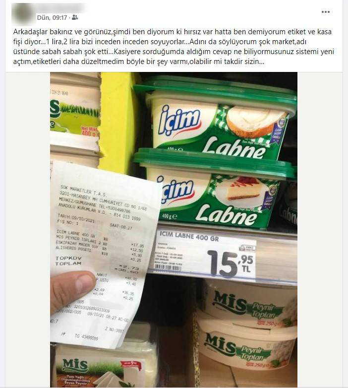 Bu durumu sosyal medya hesaplarından paylaşan vatandaş, durumu fark ettiğinde kasiyere sorduğunu ve aldığı cevabın “etiketleri daha düzeltmedim” olduğunu söyledi.