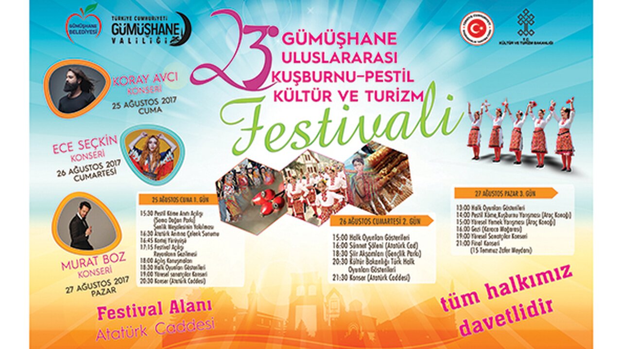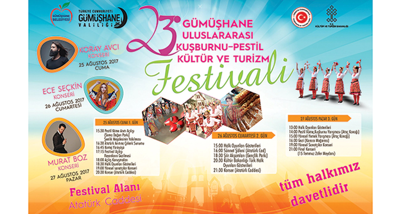 Gümüşhane Belediyesi tarafından bu yıl 23.sü yapılacak olan Uluslararası Kuşburnu-Pestil, Kültür ve Turizm Festivali programı belli oldu.