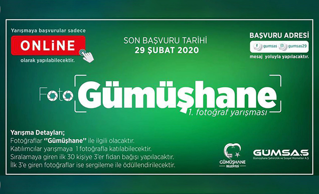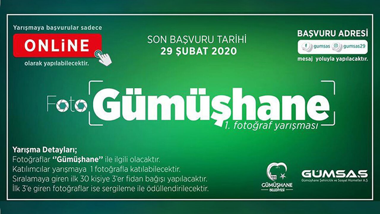 Gümüşhane Belediyesi iştiraki olan Gümüşhane Şehircilik ve Sosyal Hizmetler A.Ş (GÜMSAŞ) sosyal medya üzerinden ‘Foto Gümüşhane’ adlı yarışma başlattı. Yarışmada dereceye giren 30 kişiye fidan bağışı yapılacak.