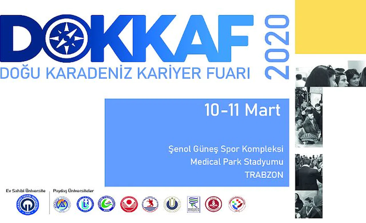 Cumhurbaşkanlığı İnsan Kaynakları Ofisi’nin tüm Türkiye’de organize ettiği kariyer fuarlarından birisi olan Doğu Karadeniz Kariyer Fuarı (DOKKAF 2020) Karadeniz Teknik Üniversitesi ev sahipliğinde Şenol Güneş Spor Kompleksi’nde gerçekleştirilecek. Bölgede yer alan 9 üniversitenin paydaşlığında 10-11 Mart 2020 tarihlerinde gerçekleştirilecek olan fuara katılanlara iş ve staj imkânı sunulacak.
