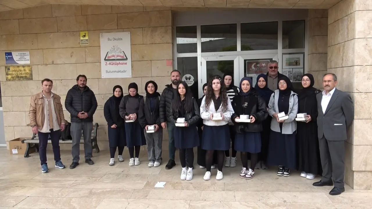 Macit, her bir öğrenciye akıllı saat, Yahya Sinvar’ın “Diken ve Karanfil” kitabı ve Kelkitli şair Seyit Tok’un “Gazze” adlı şiir kitabını hediye etti.