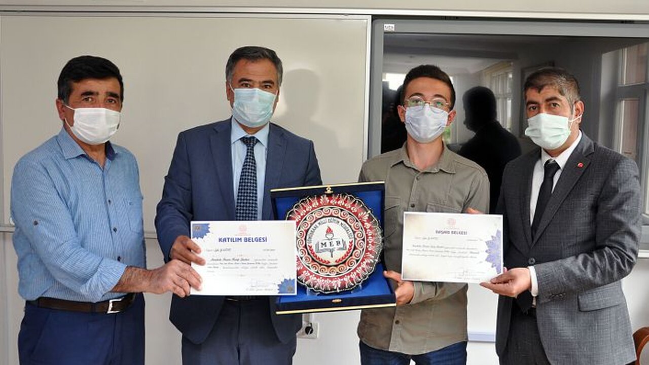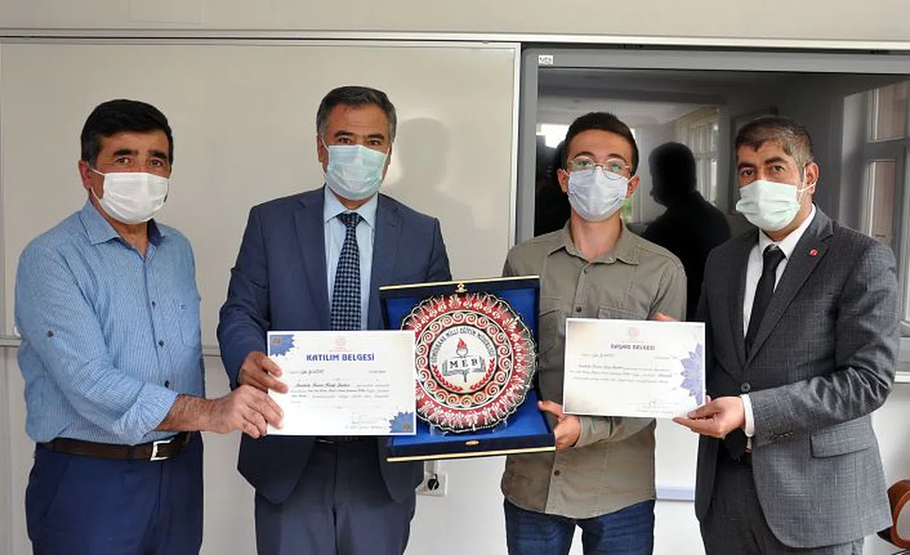 Bölge Finaline katılan Gümüşhane Fatih Anadolu İmam Hatip Lisesi öğrencisi Sefa Yağız İl Milli Eğitim Müdürü Seydi Doğan’ı makamında ziyaret ederek ödülünü aldı.