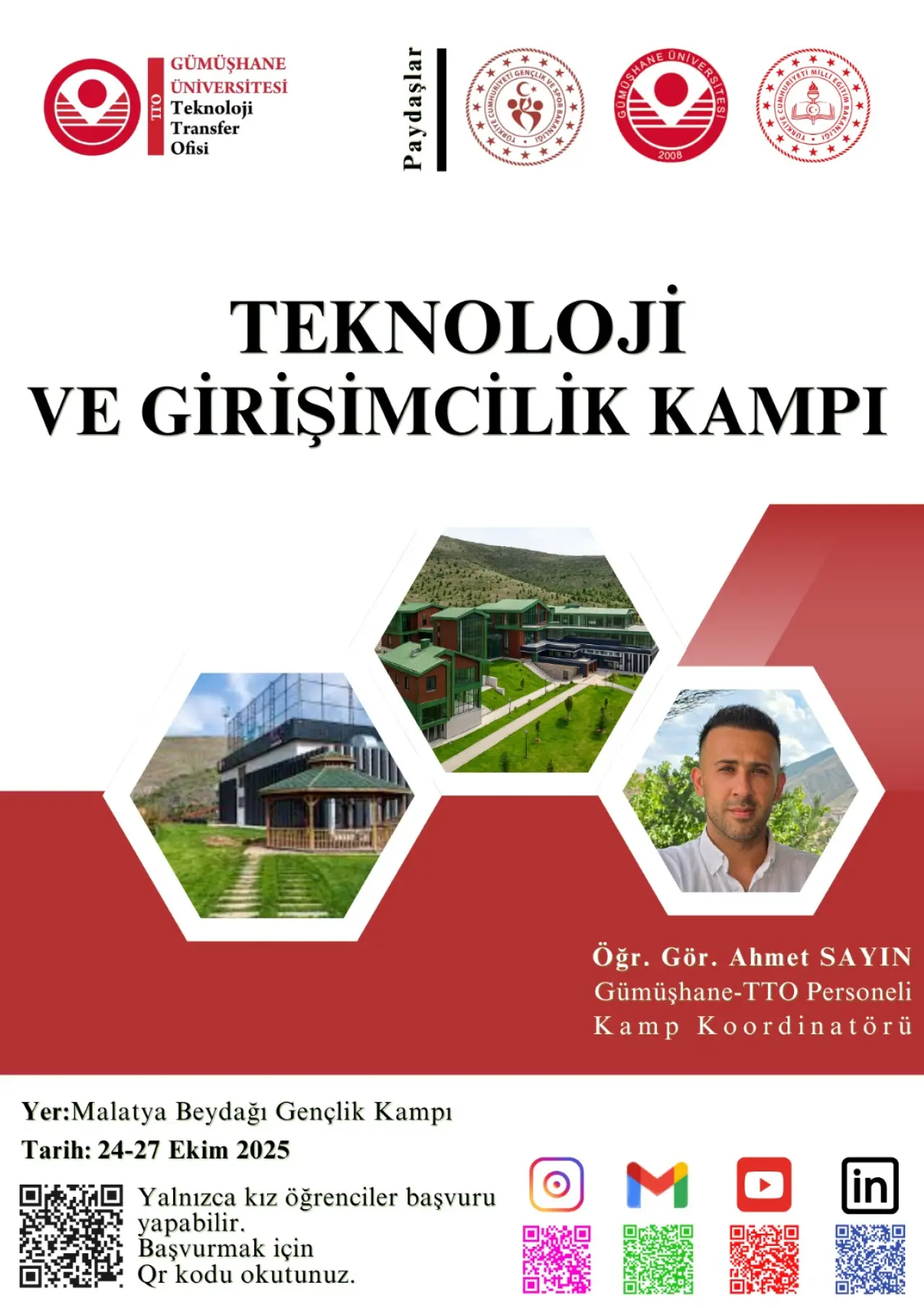 Kamplar yalnızca Gümüşhane Üniversitesi öğrencilerine değil Karadeniz Teknik Üniversitesi ve Bayburt Üniversitesi öğrencilerine ile Gümüşhane’de öğrenim gören lise 12. sınıf öğrencilerine de açık olacak. Böylece farklı eğitim kademelerinden gençler aynı vizyon etrafında buluşarak tecrübe paylaşımında bulunacak ve disiplinler arası iş birliğiyle yenilikçi projeler geliştirebilecek.