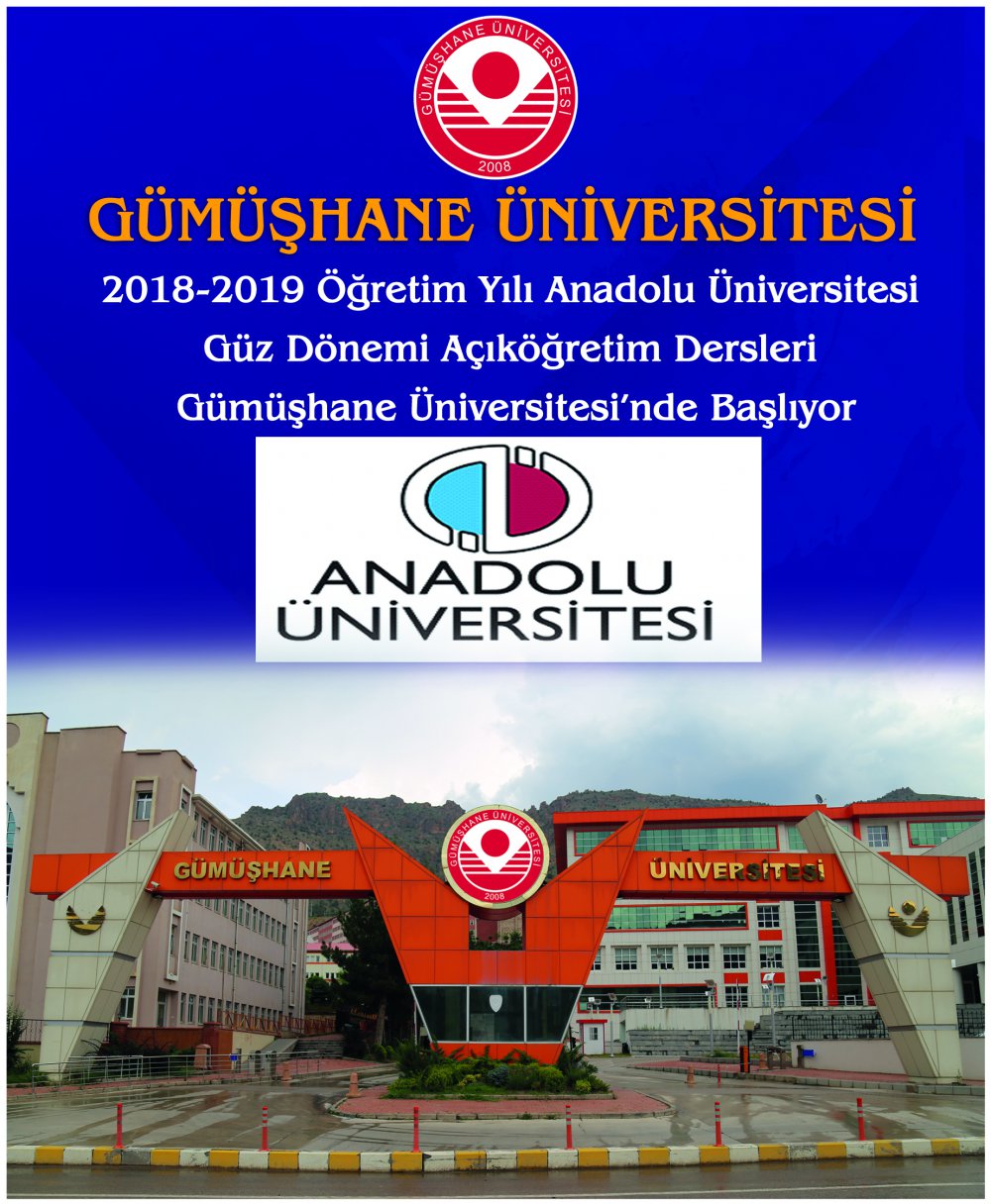 Gümüşhane Üniversitesi, Anadolu Üniversitesi'nin uzaktan eğitim-öğretim yapan Açıköğretim, İktisat ve İşletme fakülteleri öğrencilerine yönelik yüz yüze ve ücretsiz olarak düzenlediği derslerin Güz Dönemi, 15 Ekim 2018 Pazartesi günü Gümüşhane Meslek Yüksekokulu binasında başlıyor.