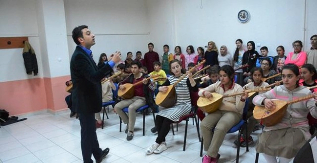Kendisinin de bir halk müziği sevdalısı olduğunu kaydeden Çakır, “Bu amaçla okulumuzda bir koro ve orkestra oluşturmayı düşündük. Orkestramız dönem başında kuruldu. İlk amaç olarak okulumuzun bir orkestrası olsun ve bu orkestra ile kendi şarkılarımızı kendimizin çalıp söylemesi idi. Bu hedeften yola çıkarak çocuklarımıza bağlama ve gitar öğretmekte karar kıldık. Çocuklarımızın talepleri yönünde bir bağlama ve ayrıca gitar orkestrası kurduk. Öğrencilerimizin arasında 35 tane bağlama çalabilen ve 20 tanede gitar çalabilen öğrencimiz var. Öğrencilerimiz bir enstrüman çalmakla birlikte aynı zamanda da söylüyor ve de o türkülerimizin hikayelerini canlandırıyor” dedi.