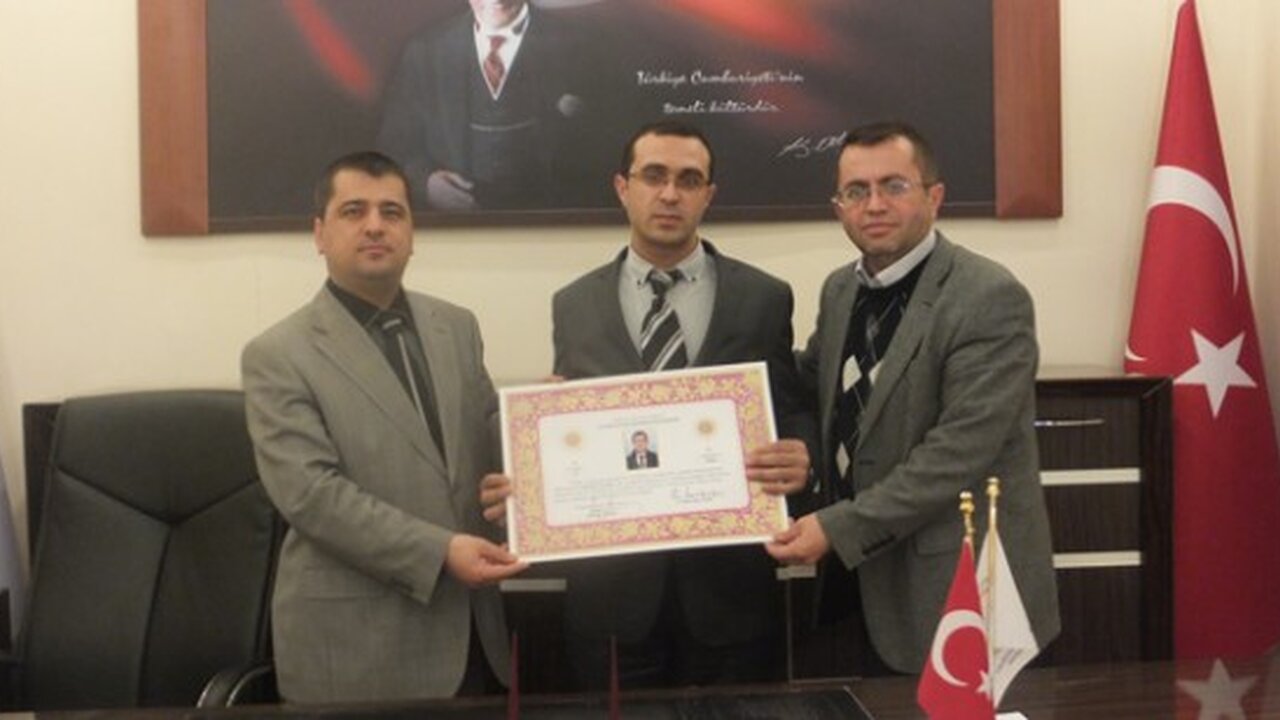 Stajını başarıyla tamamlayan Avukat Mahmut Çakır'a ruhsatını, Baro Başkanı Avukat İsmail Taştan ve eski baro başkanı Avukat İbrahim Taşdemir birlikte verdi.
