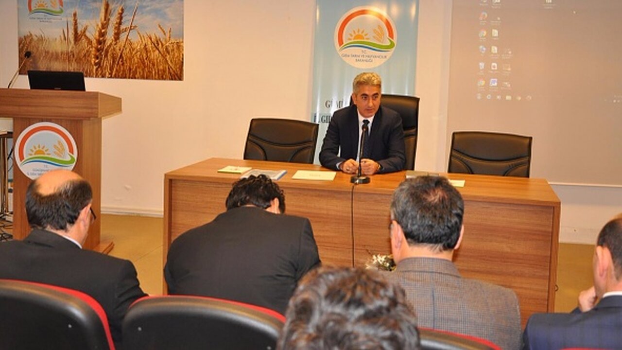 Kurumun toplantı salonunda Gıda, Tarım ve Hayvancılık İl Müdürü Edip Birşen başkanlığında yapılan toplantıya İl Müdür Yardımcısı, Şube Müdürleri ve İlçe Müdürleri katıldı.