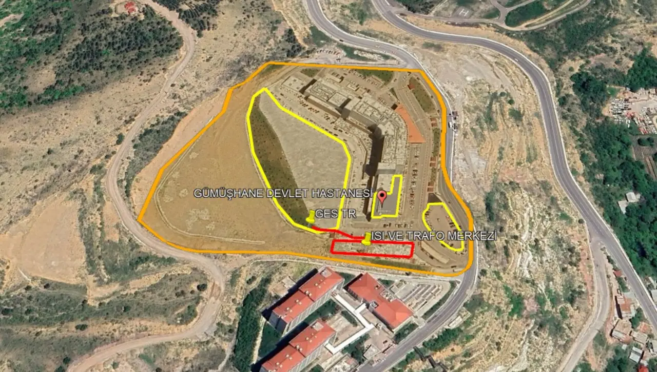 Proje kapsamında Gümüşhane Devlet Hastanesi yerleşkesinde yer alan binaların çatılarına ve açık otopark alanına toplam 1.200 kWe / 1.422,9 kWp kurulu güce sahip fotovoltaik sistem inşa edilecek.