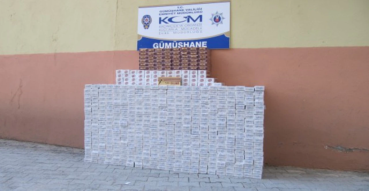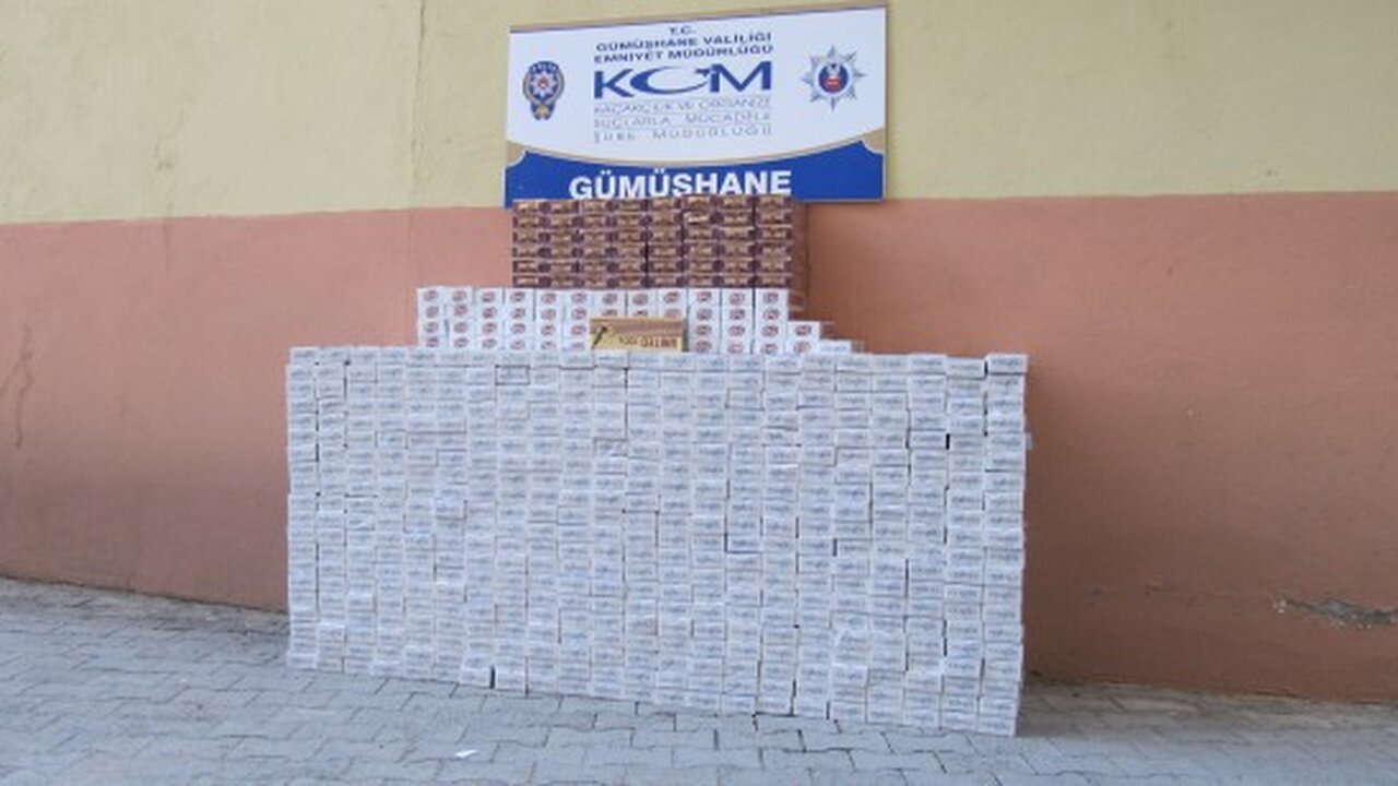 Gümüşhane İl Emniyet Müdürlüğüne bağlı Kaçakçılık ve Organize Suçlarla Mücadele Şube Müdürlüğü (KOM ekipleri tarafından yapılan operasyonda 9 bin 800 paket gümrük kaçağı sigara ele geçirildi.