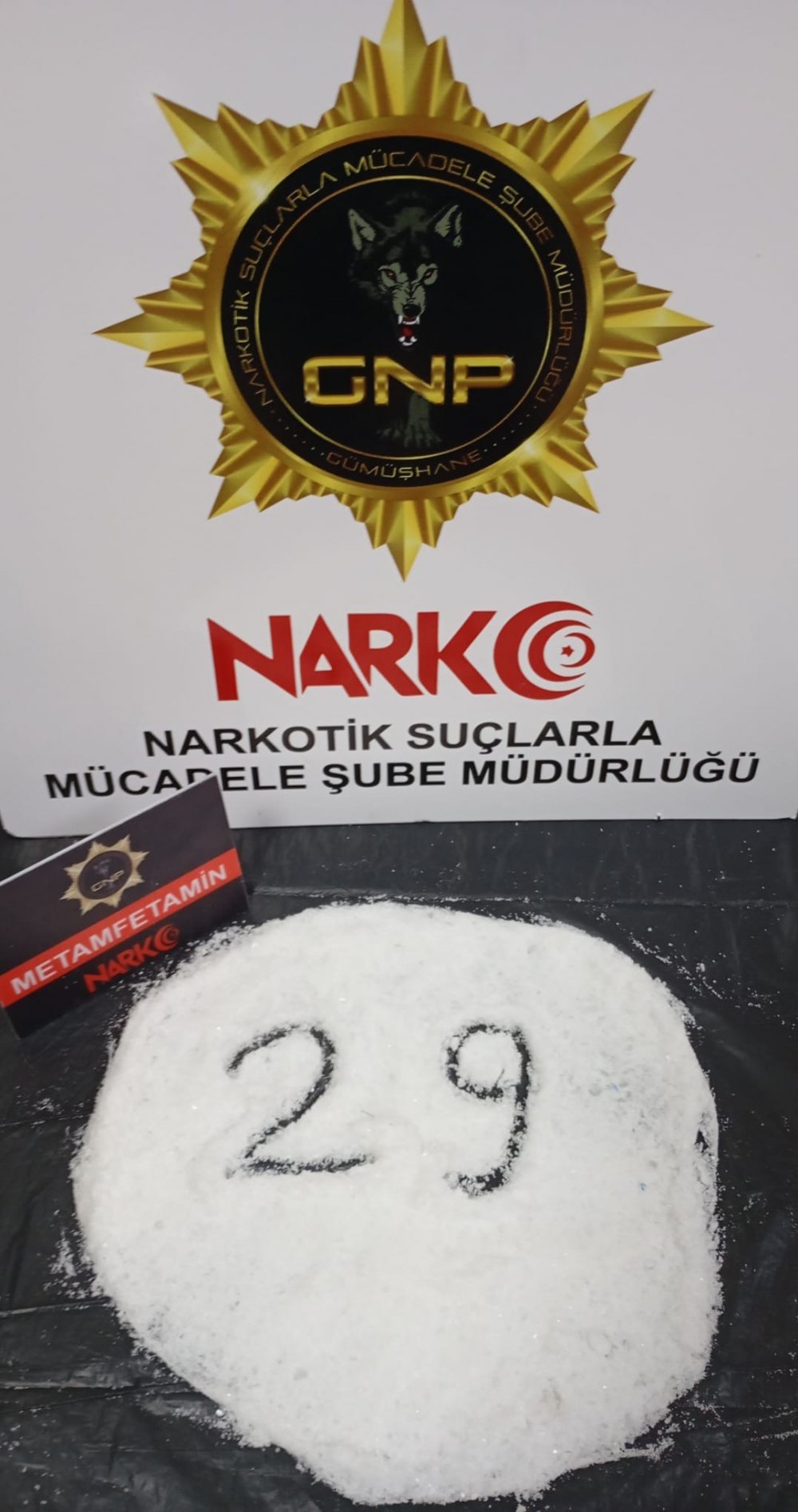 Gümüşhane İl Emniyet Müdürlüğü Narkotik Suçlarla Mücadele Şube Müdürlüğü ekipleri yaptıkları uygulamada durumunda şüphelendiği yabancı uyruklu şahsın mide ve bağırsaklarında 65 parça halinde 429,25 gram metamfetamin maddesi ele geçirdi.