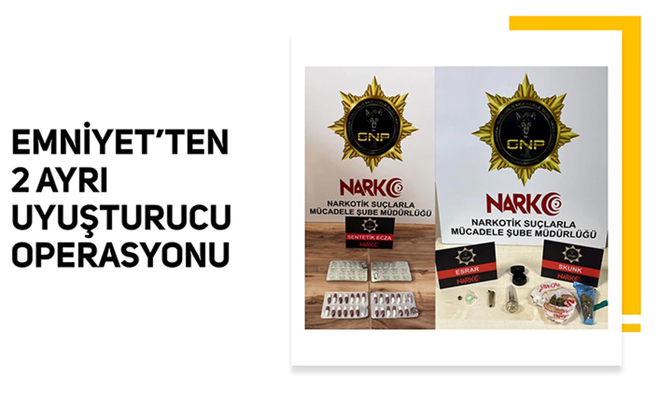 Son günlerde uyuşturucu madde ticareti ve kullanımının engellenmesine yönelik çalışmalarına hız veren İl Emniyet Müdürlüğü’ne bağlı Narkotik Suçlarla Mücadele Şube ve İstihbarat Şube ekipleri üst üste iki operasyon gerçekleştirdi.