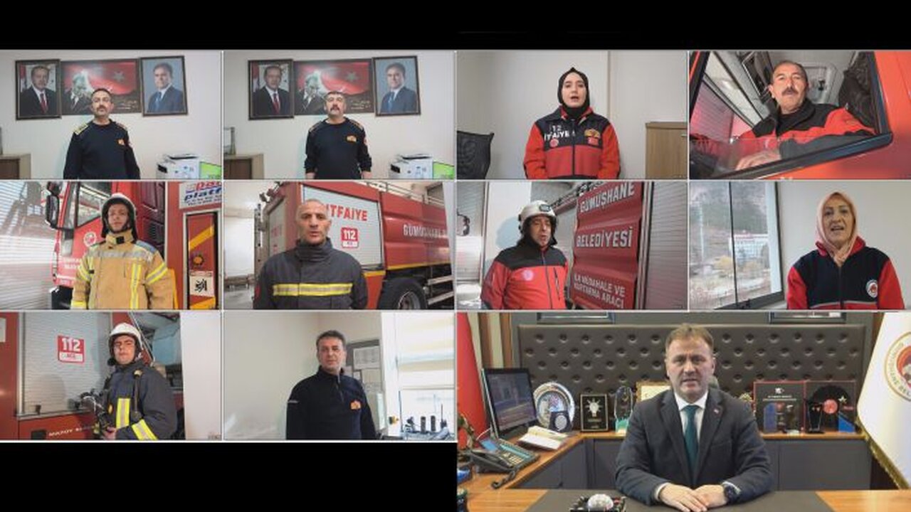 Gümüşhane Belediyesi İtfaiye Müdürlüğü yönetici ve görevlileri İstiklal Marşı’nın kabulünün 101’inci yıldönümü ve Milli Şair Mehmet Akif Ersoy’u anma gününde İstiklal Marşı’nın 10 kıtasının okunduğu bir video yayınladı.