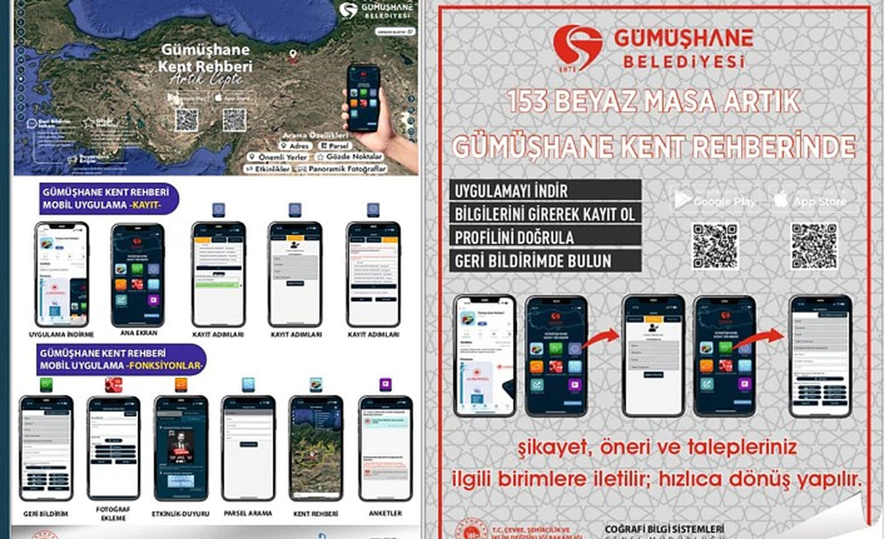 İlk olarak Çevre, Şehircilik ve İklim Değişikliği Bakanlığı, Coğrafi Bilgi Sistemleri Genel Müdürlüğü’nün altyapısını hazırladığı Ulusal Kent Rehberini Gümüşhane şehrine özel hazırlayarak Gümüşhane Kent Rehberi adıyla Gümüşhane’ye kazandırdıklarını ifade eden Başer, “Bu rehber, vatandaşlarımızın şehrimizle ilgili tüm bilgilere kolayca ulaşabileceği, şehrimizi daha yakından tanıyabileceği dijital bir platform olacak. Web ve mobil uygulama üzerinden erişilebilen bu rehber sayesinde, Gümüşhane’nin tüm verileri tek bir noktada toplanmış olacak. Gümüşhane Kent Rehberine web üzerinden https://bulutkbs.gov.tr/Rehber/#/app?63706660 adresinden ulaşabileceğiniz gibi Ulusal Kent Rehberi adıyla Google Play ve Türkiye Kent Rehberi adıyla da App Store mağazalarından da cep telefonlarınıza indirebilirsiniz” diye konuştu.