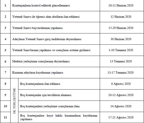 Başvuruların 15-29 Haziran tarihleri arasında olduğunu söyleyen okul müdürü Abdullah Aktuğ sınavın 1- 10 Temmuz tarihleri arasında covid19 tedbirleri kapsamında randevu ile yapılacağını belirtti.