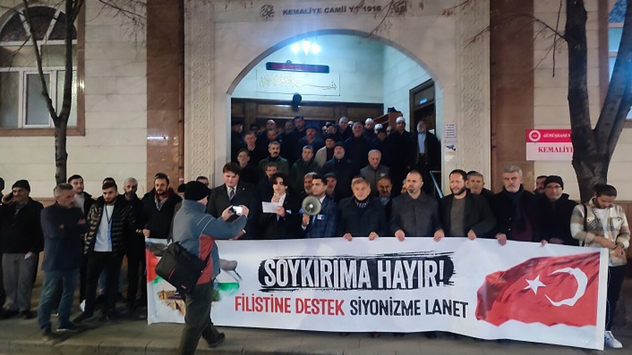 TÜGVA öncülüğünde birçok STK’nın bir araya gelerek Merkez Kemaliye Camiinde yatsı namazı çıkışında gerçekleştirdiği basın açıklamasında bildiriyi TÜGVA Gümüşhane Başkanı İsrafil Nas’ın Trabzon’daki bir hastanede ameliyat olması nedeniyle TÜGVA Gümüşhane Medya iletişim sorumlusu Berat Akkul yaptı.