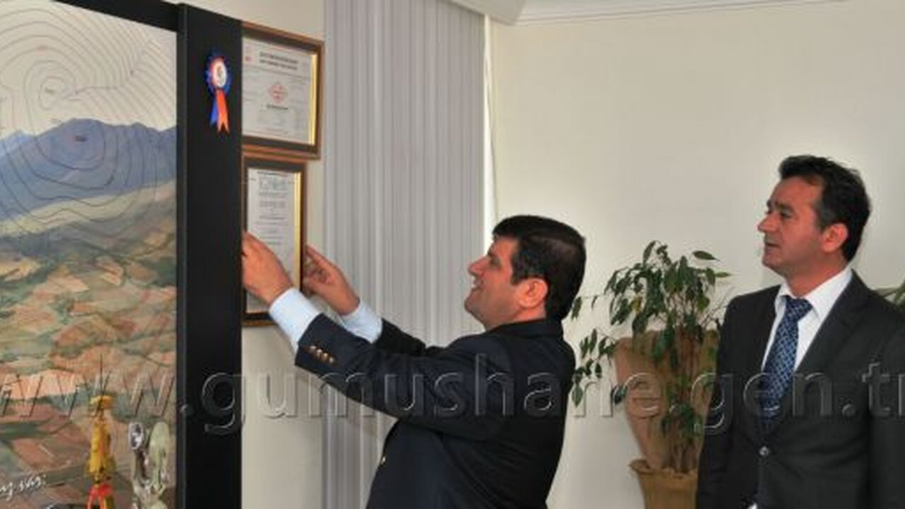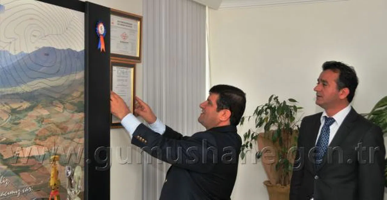 Gümüşhane Tapu ve Kadastro Müdürlüklerinin aldıkları ISO-9001-2008 Kalite Yönetim Sistemi Belgeleri Vali Dr. Yusuf Mayda tarafından kurumda ilgili yerlere asıldı.