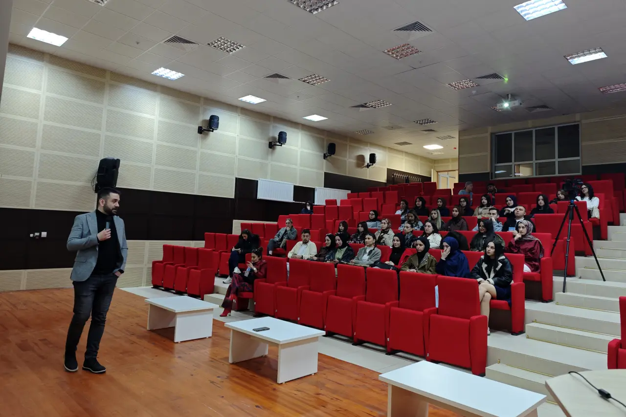 Programın ana konuşmacısı olan Gümüşhane Üniversitesi İletişim Fakültesi Halkla İlişkiler ve Tanıtım Bölümü Araştırma Görevlisi Muhammed Vedat Karadağ, “Halkla İlişkilerde Dil Kullanımı ve Toplumsal Gerçeklik Oluşumunun Yansımaları” başlıklı bir sunum gerçekleştirdi.