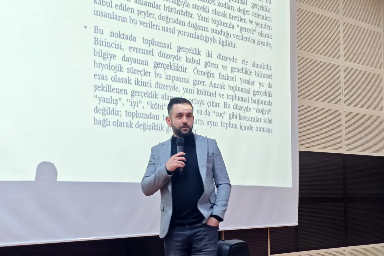 Karadağ, toplumsal gerçekliğin durağan bir yapıda olmadığını, aksine iletişim süreçleri aracılığıyla sürekli yeniden üretildiğini vurguladı. Dilin sadece bir aktarım aracı olmadığını belirten Karadağ, "Dil; gerçekliği şekillendiren, çerçeveleyen ve anlamlandıran en güçlü mekanizmadır" ifadelerini kullandı.
