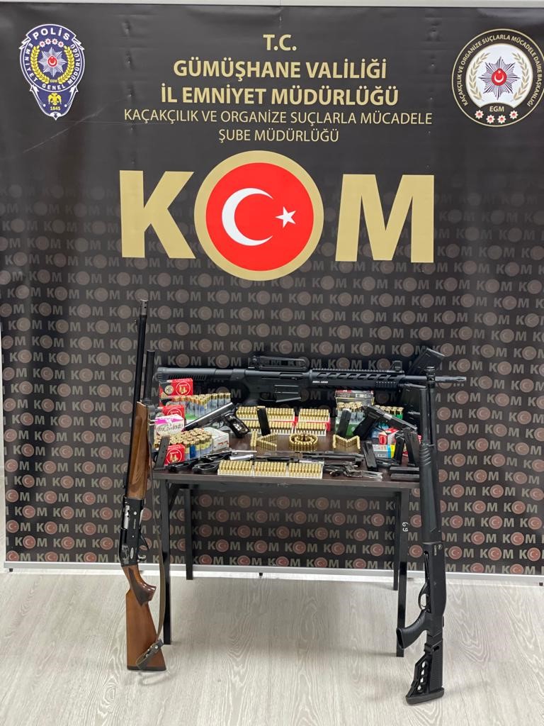 İl Emniyet Müdürlüğü Kaçakçılık ve Organize Suçlarla Mücadele Şube Müdürlüğü (KOM) ekiplerince yapılan çalışmalar kapsamında dün saat 07.00 itibari ile Gümüşhane merkezli Giresun ilinin de bulunduğu 2 ildeki 7 farklı adreste kaçak silah ticaretine yönelik B.Y, A.B, A.Y, H.K, K.Ü isimli şahıslara ait adreslere yönelik eş zamanlı operasyon gerçekleştirildi.