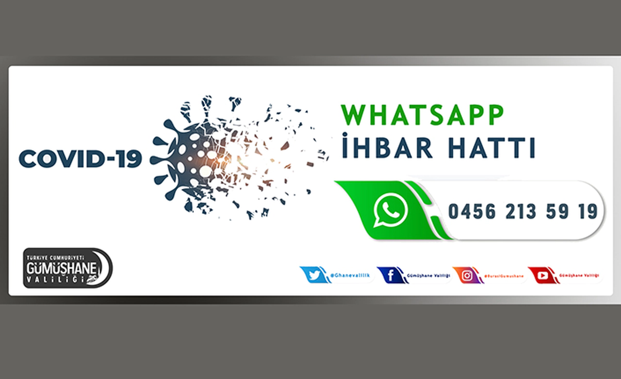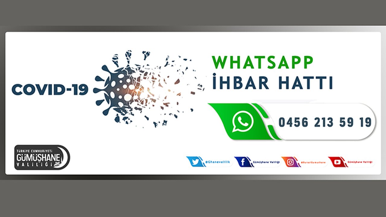 Yine kurumun web sitesinde yer alan duyuruyla da covid-19 tedbirlerine yönelik ihlallerin 0 456 213 59 19 numaralı Gümüşhane Valiliği Whatsapp ihbar hattına bildirilmesi istendi.