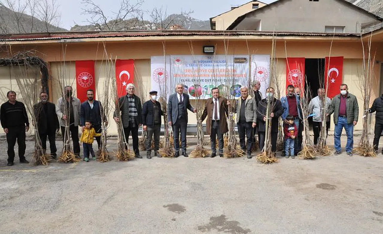 Gümüşhane’de yerel meyve çeşitlerinin korunması için bin 400 adet fidan üreticilere 70 dekar alanda bahçe tesisi yapmaları için dağıtıldı.