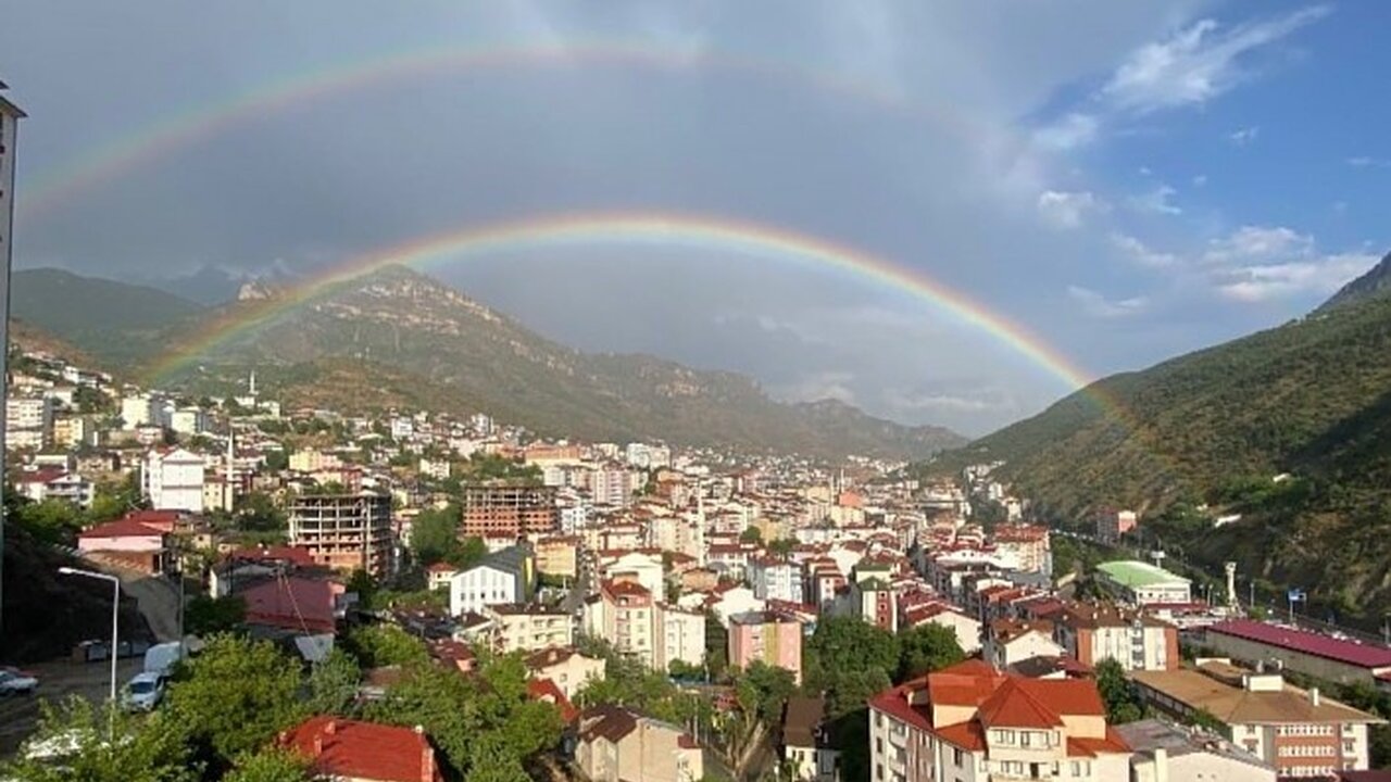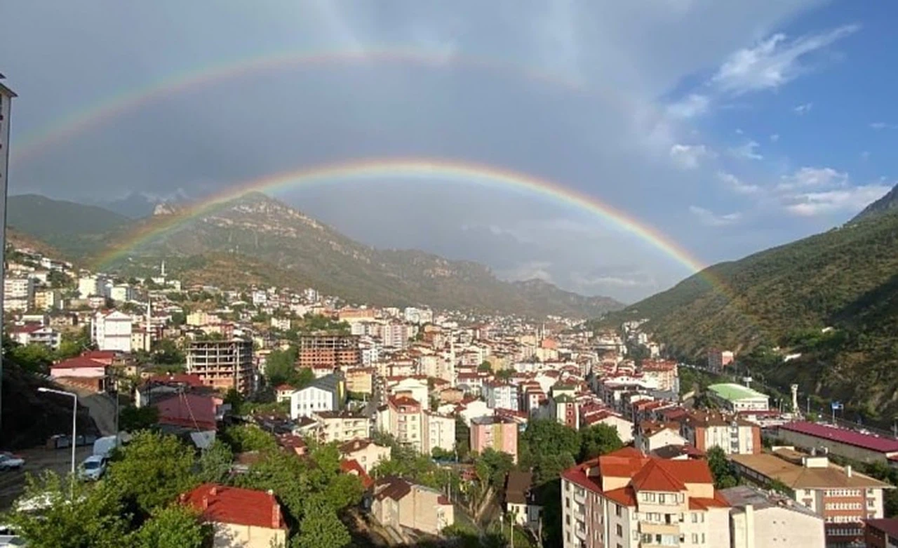 Gümüşhane Haberleri Gümüşhane Gümüşhane'de çift gökkuşağı görsel şölen oluşturdu