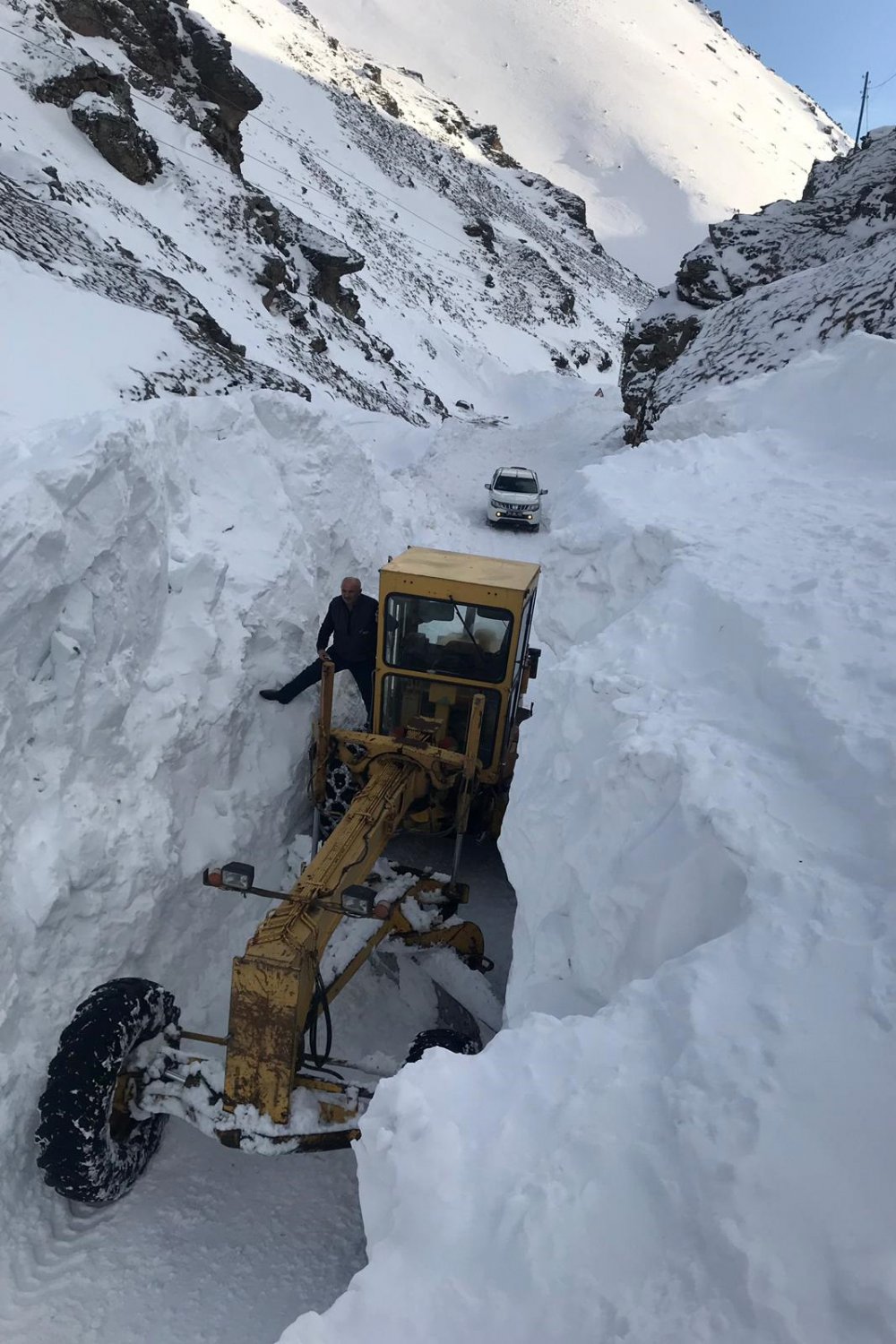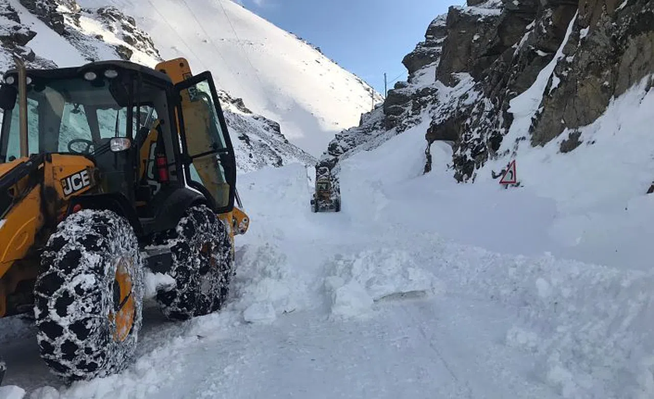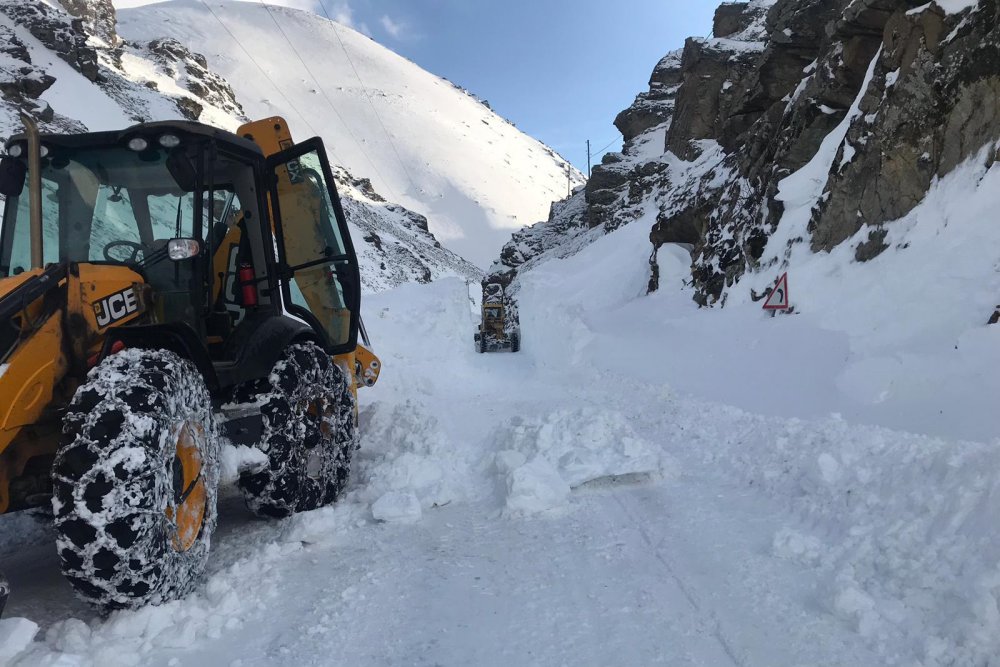İl Özel İdaresine ait iş makineleri yol üzerinde 10 metre yüksekliğinde ve 30 metre uzunluğunda ki çığ kütlesini 2 günde temizlerken, gece yarılarına kadar süren çalışmaların ardından yol tamamen ulaşıma açıldı.