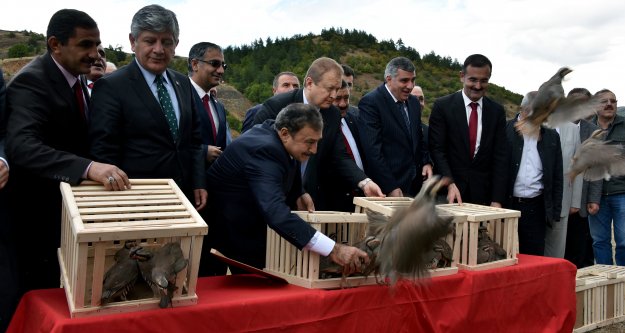 Bir dizi ziyaret, temel atma ve açılış programı için Gümüşhane’ye gelen Orman ve Su İşleri Bakanı Prof.Dr. Veysel Eroğlu, Pekün dağında 300 kekliği doğaya saldı.