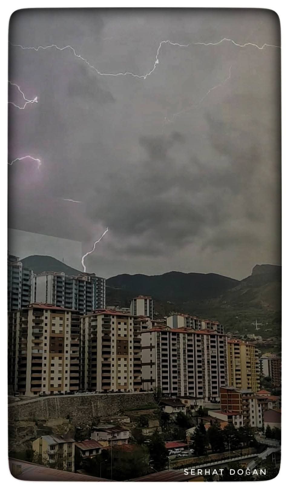 Görüntülerde, ardı ardına düşen yıldırımların Gümüşhane semalarını aydınlatması dikkat çekerken, doğa olayının görkemi izleyenleri büyüledi.