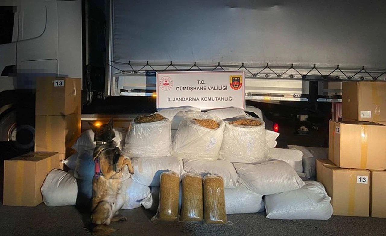 Jandarma ekipleri, kaçak tütün taşıdığı belirlenen tırı İkisu mevkiinde durdurarak adli arama gerçekleştirdi. Çay ve Tütün Arama Köpeği ‘Ekip’ de operasyona katılarak kaçak tütünlerin tespit edilmesini sağladı.