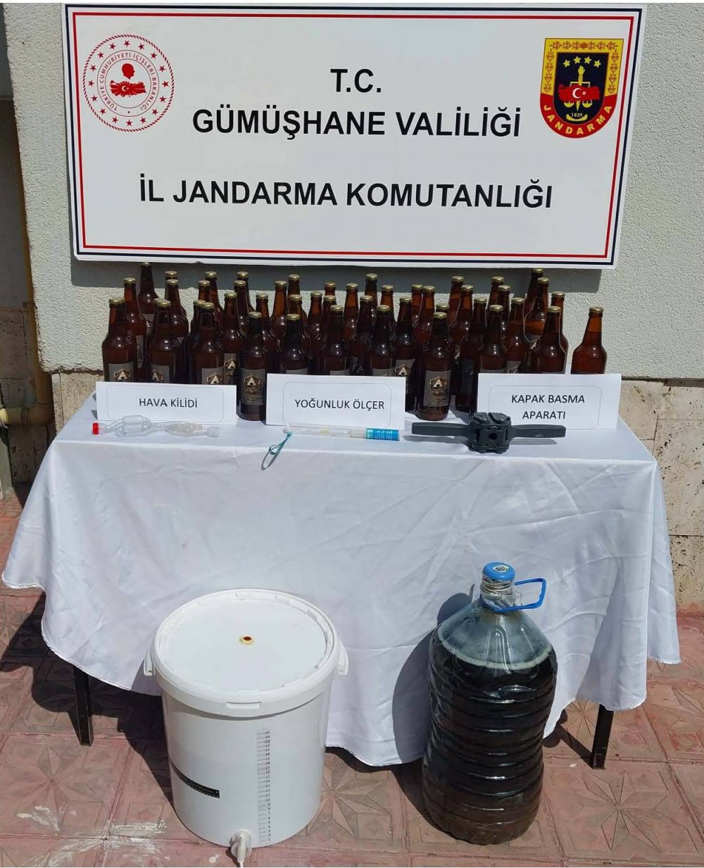 Alınan arama kararına istinaden KOM Şube ve Merkez İlçe Jandarma Komutanlığı ekiplerinin şüpheli şahsın evinde yaptıkları aramada 47 adet toplam 23 litre satışa hazır bira şişesi, 40 litre mayalanmaya bırakılmış el yapımı bira, 1 adet yoğunluk ölçer, 1 adet kapak kapatma aparatı ve 1 adet hava kilidi ele geçirildi.