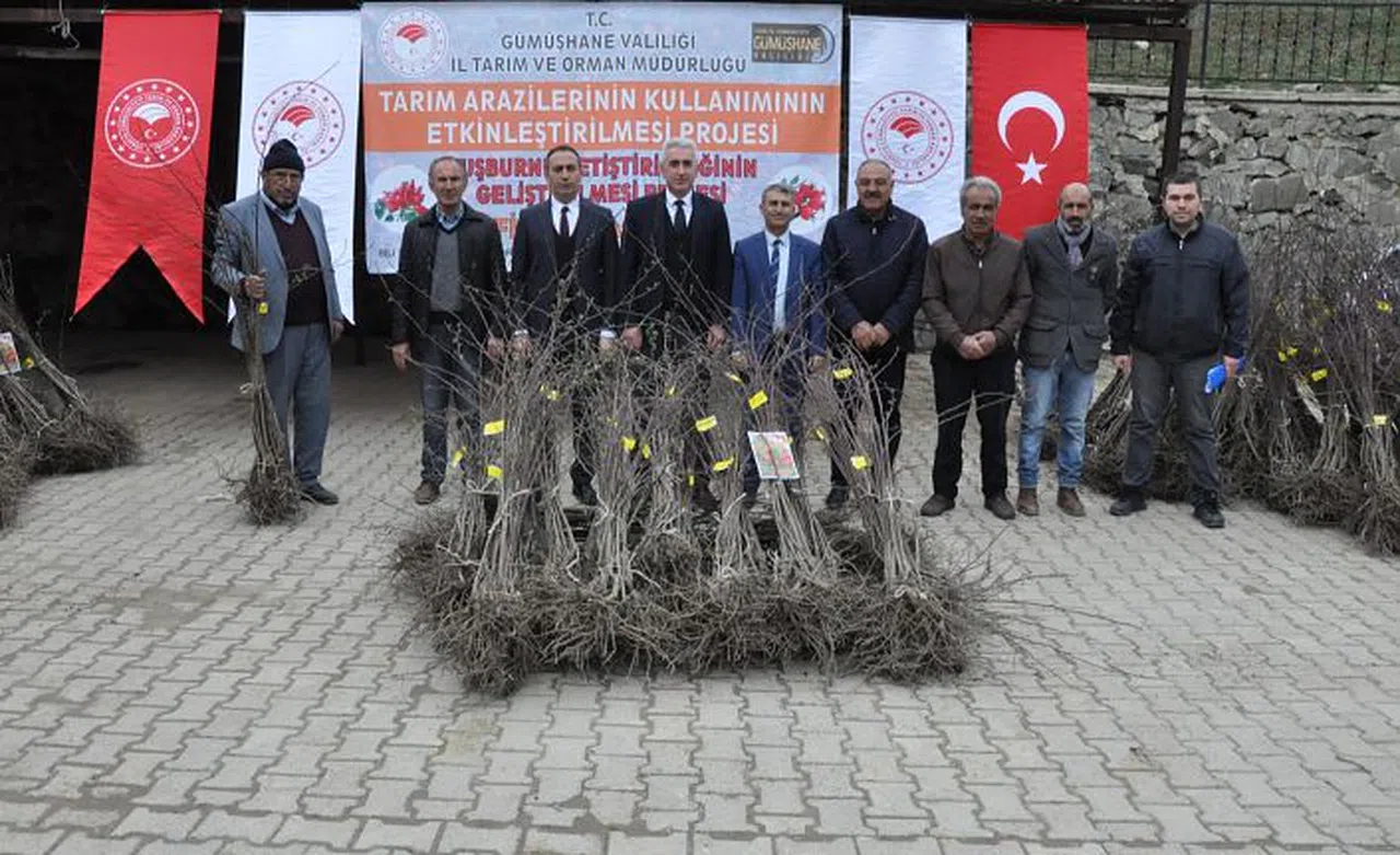 Dağlarında Türkiye’deki 27 tür kuşburnu bitkisinden 17’sinin doğal olarak yetiştiği Gümüşhane’de hazırlanan proje kapsamında Şiran ilçesinde 18 üreticiye yüzde 75 hibe destekli 5 bin adet sertifikalı kuşburnu fidanı dağıtımı yapılarak 34 dekar alanda modern kapama kuşburnu bahçeleri kurulacak.