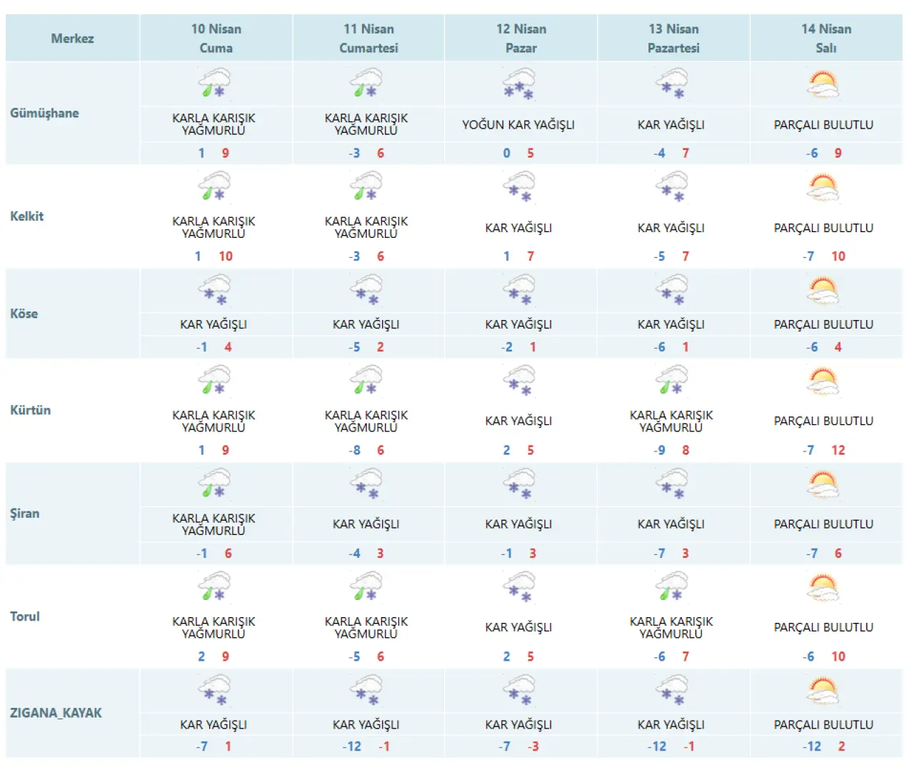 Gümüşhane, meteorolojik tahminleri doğrularcasına 10 Nisan sabahına beyaz bir örtüyle uyandı.