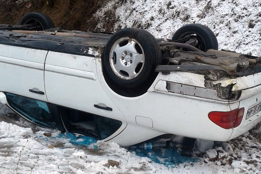 Gümüşhane’den İstanbul’a giden otomobil kayganlaşan yolda kontrolden çıkarak takla attı. Kazada 4 kişi yaralandı.