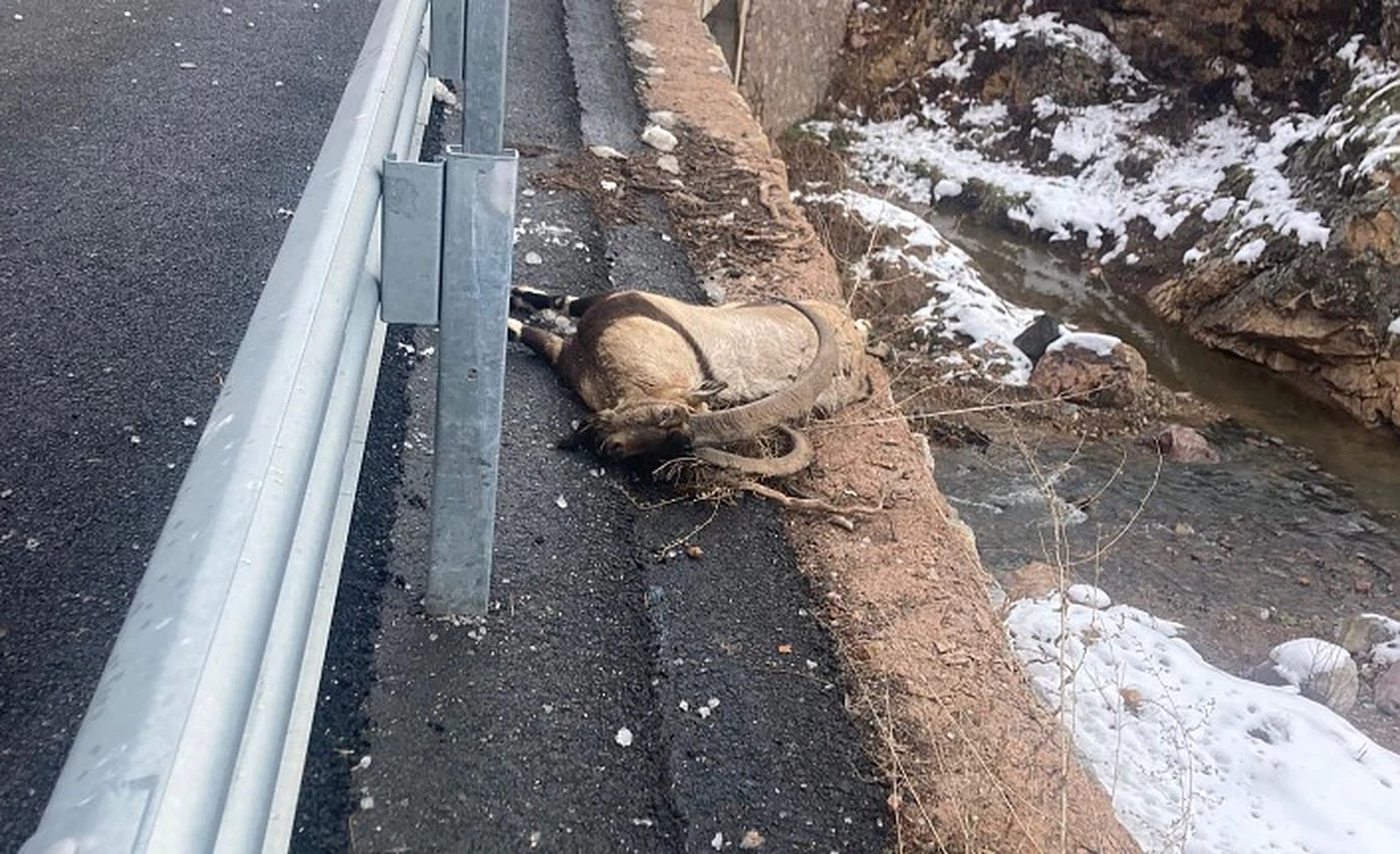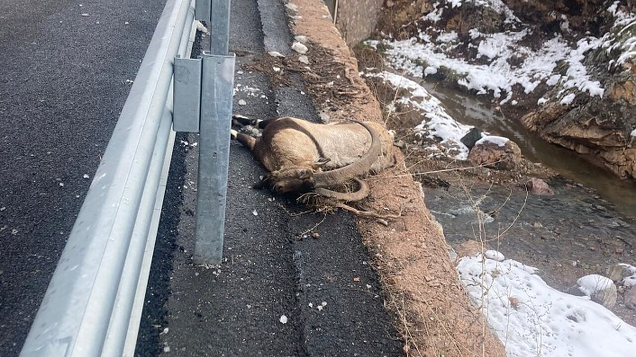 Gümüşhane’de otomobilin çarptığı yaban keçisi telef oldu