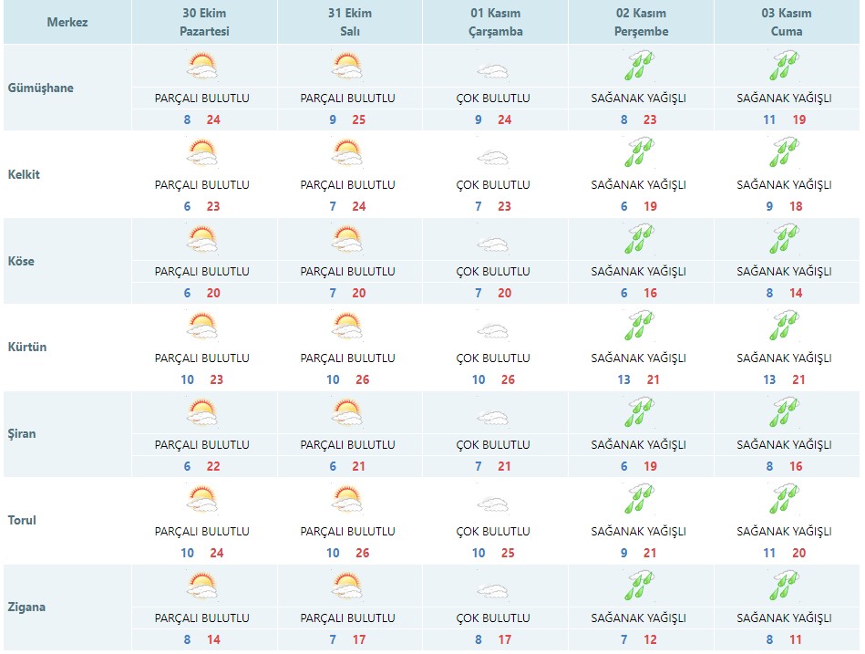 İşte Gümüşhane ve ilçelerinin 5 günlük hava tahmini: